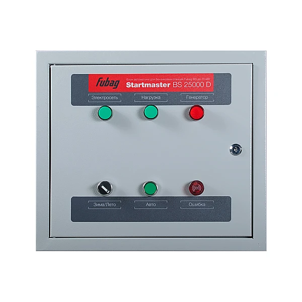 Блок автоматики FUBAG Startmaster BS 25000 D (400V) является опциональной принадлежностью к трехфазным бензиновым генераторам с функцией автозапуска. Система позволяет реализовать функции автоматического ввода резерва, обеспечивая запуск автономной электростанции и подключение к ней потребителей при перебоях в работе централизованных энергосистем без вмешательства пользователя. 8-метровый кабель управления включен в комплект поставки, что дает возможность размещать блок управления на удалении от генератора, в том числе в жилых помещениях.