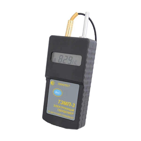 Комплект поставки твердомера ТЭМП-3 – блок электронный в пластмассовом или металлическом корпусе, датчик, толкатель, 2 элемента питания тип АА, дискета с программным обеспечением, паспорт с методикой поверки, чехол, первичная поверка.