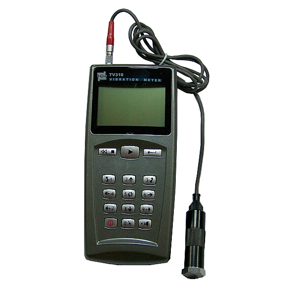 Измеритель вибрации TV310 использует пьезоэлектрический датчик ускорений для преобразования вибраций в электрический сигнал, который затем анализируется микропроцессором прибора и показания выводятся в цифровом виде: виброскорость, вибросмещение, виброускорение.