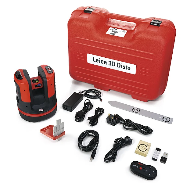 Leica 3D Disto оснащен пультом дистанционного управления и контрольной панелью – планшетом с сенсорным экраном. Они могут быть связаны при помощи кабеля или по радиоканалу. В прибор встроен калькулятор для проведения небольших расчетов. Память планшета достигает 500 Гб. В комплекте с дальномером идут специальные маячки, программное обеспечение, удобный кейс и огромная инструкция.