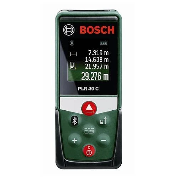 Лазерный дальномер Bosch PLR 40 C измеряет расстояния до 40 метров с точностью 2мм. С помощью Bluetooth вы можете передать измеренные данные на смартфон для составления чертежа.