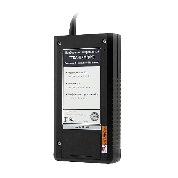 ТКА-ПКМ 09 поддерживает широкий диапазон измерений освещенности: от 10 до 200.000 лк, а также яркости: от 10 до 200.000 кд/м2. Отлично подходит для диагностики различных источников излучения, определяет параметры протяженных самосветящихся объектов. Необходимая информация демонстрируется на дисплее в общепринятой и понятной форме: на первом экране отображаются показатели освещенности и коэффициент пульсации, на другом –яркость. Для более детальной обработки данных специалист может вывести файлы на персональный компьютер с помощью USB интерфейса.
