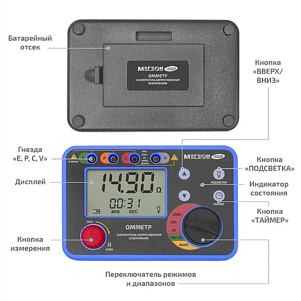 Купить Омметр (измеритель сопротивления заземления) МЕГЕОН 13020 в Казани легко — просто позвоните по телефону: 8-800-551-11-01