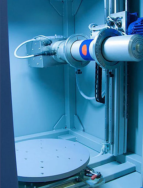 Камера радиационной защиты представляет собой каркасную конструкцию из свинца и стали с внутренним наполнением, состоящую из четырёх элементов: кабина радиационной защиты, штатив-манипулятор для рентгеновского аппарата, поворотно-передвижной стол для объекта контроля, щит управления.