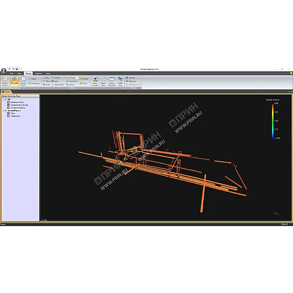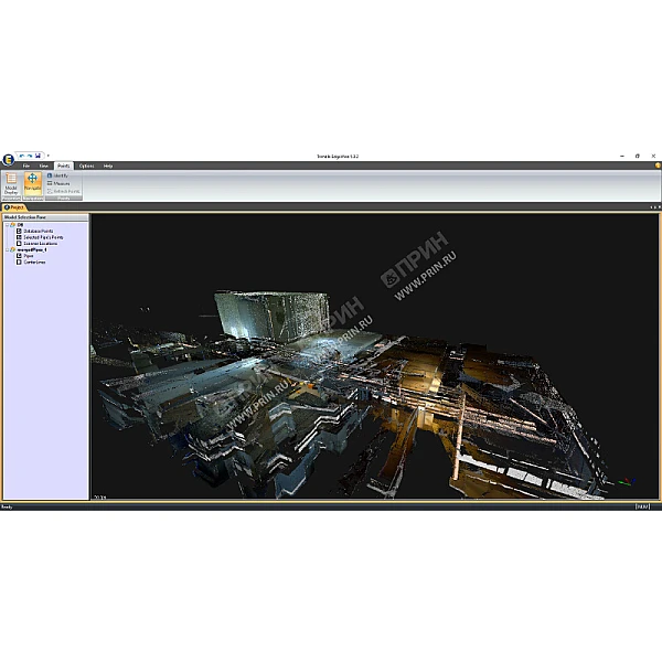 Для визуальной проверки правильности построения плоскостей каждый созданный регион точек имеет свой цвет. После нажатия одной кнопки программа автоматически вписывает полигоны в соответствующие группы точек на плоскости, что позволяет получить универсальную для всех поверхностей модель, которую затем можно экспортировать в одном из CAD-форматов для дальнейшей обработки в удобном для Вас приложении (AutoCAD, Revit, MicroStation, Google SketchUp).
