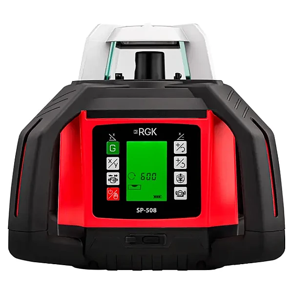Ротационный нивелир RGK SP-508 — это усовершенствованная версия популярной модели SP-502, сохраняющая все её ключевые преимущества и при этом предлагающая одну принципиально новую функцию — автоматическую ориентацию лазерного луча на приёмник. Эта технология значительно упрощает и ускоряет ряд геодезических и строительных операций, где требуется точное совмещение лазерной плоскости с заданной отметкой. Она не просто упрощает работу, а кардинально меняет подход к выполнению ряда задач: теперь не нужно вручную подстраивать прибор под приёмник — он делает это сам, мгновенно и точно.
