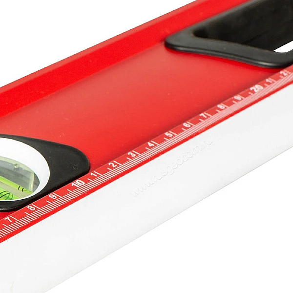 На узком верхнем ребре строительного уровня RGK U7040 находится окошко, в котором с помощью системы зеркал отображается положение пузырька вертикального уровня. Благодаря этому, удобно контролировать вертикальные поверхности в узких нишах и в прочих труднодоступных местах.