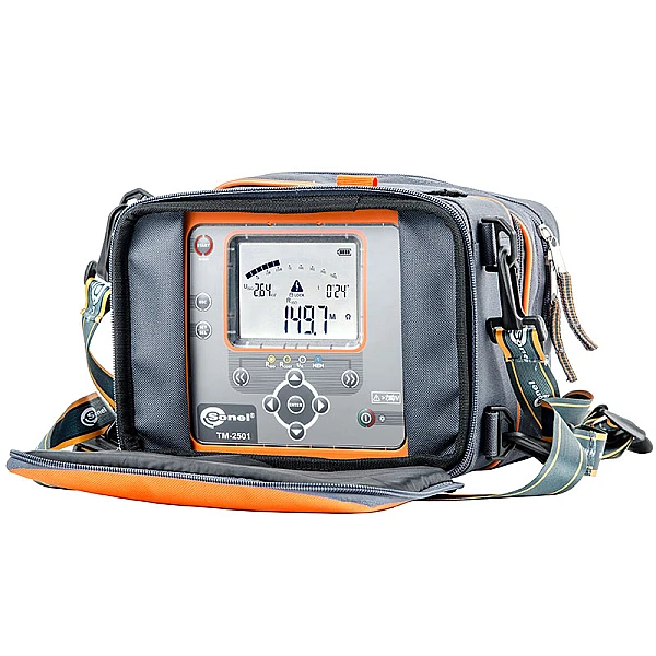 TM-5001 — цифровой мегаомметр, предназначенный для измерения сопротивления изоляции кабельных линий, проводов, обмоток трансформаторов, двигателей, других электро- и телекоммуникационных установок. Максимальное измерительное напряжение составляет 5000 В постоянного тока, а диапазон измеряемого сопротивления ограничен величиной в 5000 ГОм. Установка трех интервалов времени позволяет автоматически рассчитывать коэффициенты абсорбции (увлажненности) и поляризации (старения). В процессе измерения сопротивления изоляции прибор отображает величину тока утечки. Функция Ramp test позволяет измерять сопротивления изоляции и напряжения пробоя с шагом до 1 кВ/с.