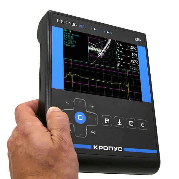 Новый вихретоковый дефектоскоп ВЕКТОР версии 40 представляет собой портативный и легкий современный прибор с прямой оцифровкой сигнала.