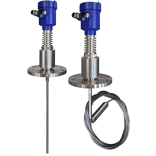 Волноводные уровнемеры могут комплектоваться штыревым волноводом для измерения в диапазоне от 0,5 до 6 метров или тросовым волноводом для диапазона измерений от 1 до 30 м.